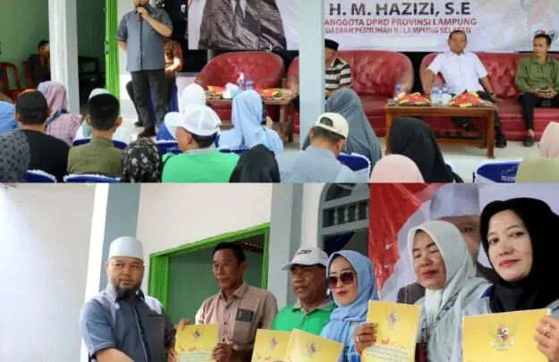 Anggota DPRD Provinsi Lampung, M. Hazizi mengajak seluruh masyarakat untuk bersama-sama menjaga rasa persatuan dan kesatuan dalam meningkatkan pembangunan dan kesejahteraan masyarakat. Hal itu disampaikan M. Hazizi saat melaksanakan sosialisasi pembinaan ideologi Pancasila dan Wawasan Kebangsaan. Kegiatan itu dilaksanakan di Desa Kuripan, Kecamatan Penengahan, Lampung Selatan, Jumat, 25 Oktober 2024.