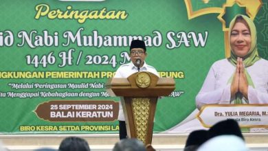Bandar Lampung — Pj. Gubernur Lampung Samsudin menghadiri Peringatan Maulid Nabi Muhammad S.A.W Tahun 2024 di Lingkungan Pemerintah Provinsi Lampung…