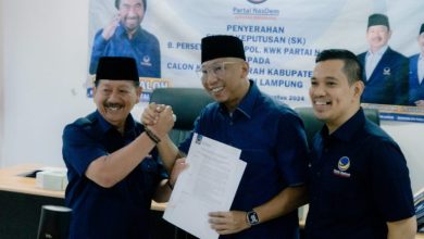 Lampung– Dalam acara penyerahan B1-KWK Partai Nasdem di Kantor DPP Partai Nasdem, Ketua DPW Partai Nasdem Provinsi Lampung, Herman HN,…