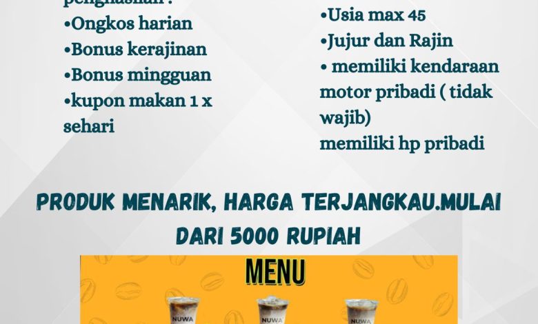 Bandar Lampung – Kabar gembira bagi warga Bandar Lampung dan sekitarnya. Bagi pecinta kopi kekinian, dijadwalkan Nuwa bakal membuka lapak gerobak kopi sekaligus di 20 titik yang tersebar di Bandar Lampung dengan harga yang ekonomis.