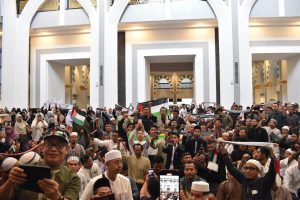 Acara ini dihadiri oleh 4.000an jamaah yang memenuhi hampir seluruh ruangan masjid. Gema takbir dan seruan semangat perjuang Rakyat Palestina “Birru Biddam Nafdika Yaa Aqsha” memenuhi masjid, membangkitkan semangat dan juga rasa haru yang tak terkatakan.