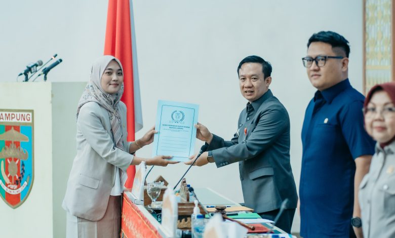 Keenam Raperda tersebut meliputi Raperda tentang Percepatan Perizinan Usaha Pertambangan Mineral Bukan Logam, Perlindungan dan Pemberdayaan Petani, Penerapan Pola Pengelolaan Keuangan Badan Layanan Umum Daerah (BLUD), Pengendalian Kawasan Keselamatan Operasi Penerbangan Bandara Radin Inten II, Pengelolaan dan Penyelenggaraan Mutu Pendidikan, serta Penyelenggaraan Satu Data.