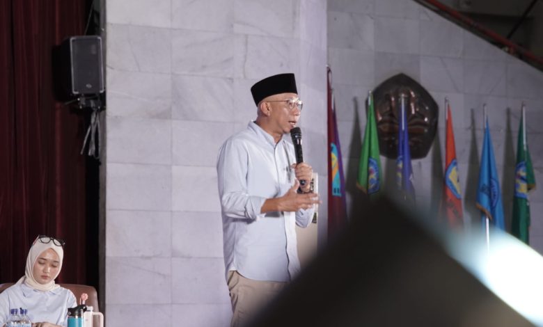Bandar Lampung – Calon Gubernur Lampung, Rahmat Mirzani Djausal, bersama Calon Wakil Gubernur, dr. Jihan Nurlela, hadir sebagai pembicara dalam acara House of Nation yang diselenggarakan oleh Badan Eksekutif Mahasiswa Universitas Lampung (BEM U KBM Unila) di Gedung Serba Guna (GSG) Universitas Lampung, Kamis (24/10).
