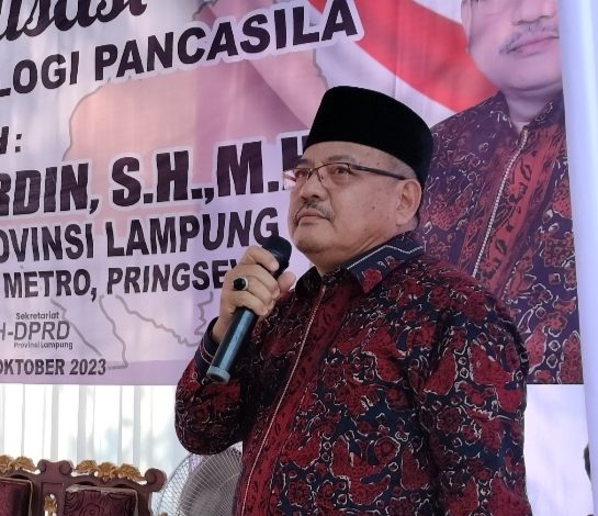 “Ini merupakan tugas wajib kami, untuk menyampaikan dan mensosialisasikan Pancasila ke masyarakat secara langsung,” kata Watoni Noerdin, disela kegiatan. Sosialisasi Ideologi Pembinaan Pancasila dan Wawasan Kebangsaan, di Pekon Waluyojati, Kecamatan Pringsewu, Kabupaten Pringsewu. Jum’at (26/01/2024).