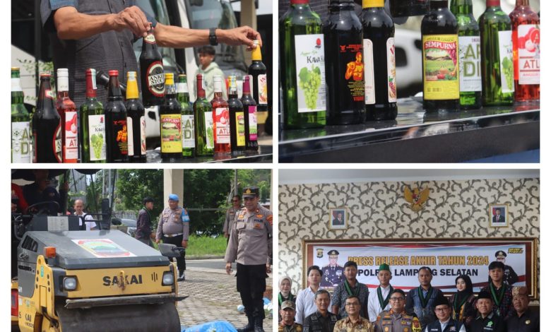 Polres Lampung Selatan Musnahkan Ratusan Botol Miras Jelang Malam Tahun Baru 2025
