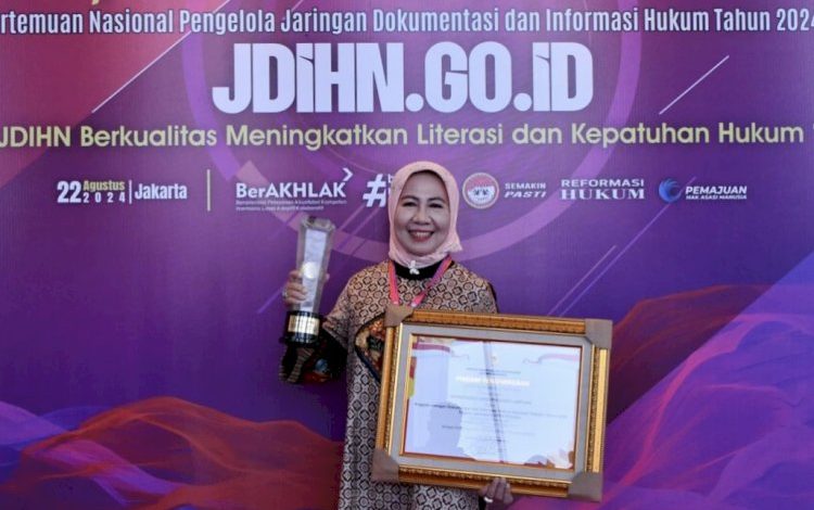 Sekretaris DPRD (Sekwan) Provinsi Lampung Tina Malinda meraih penghargaan sebagai Jaringan Dokumentasi dan Informasi Hukum Nasional (JDIHN) terbaik pertama untuk tahun 2024.