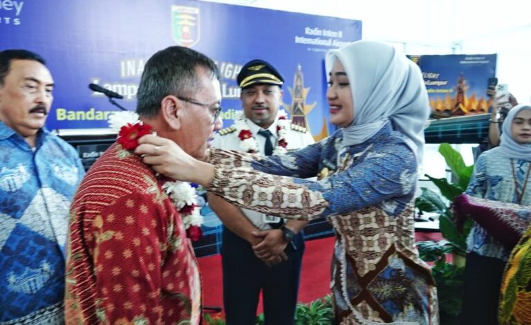 Lampung Selatan — Wakil Gubernur Lampung, Jihan Nurlela meresmikan penerbangan perdana (inaugural flight) rute internasional Lampung–Kuala Lumpur di Bandara Internasional Radin Inten II, Kamis (12/2/2026). Peresmian ini menandai kembali beroperasinya status internasional bandara tersebut setelah sebelumnya sempat tidak melayani penerbangan luar negeri.